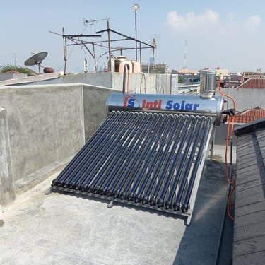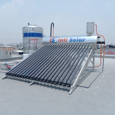 Pemanas Air Tenaga Surya (Solar Water Heater) dari Inti Solar menggunakan energi matahari untuk memanaskan air secara efisien dan ramah lingkungan.