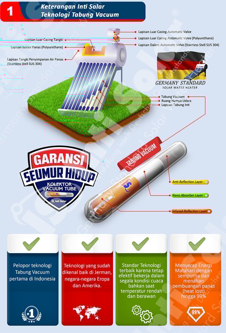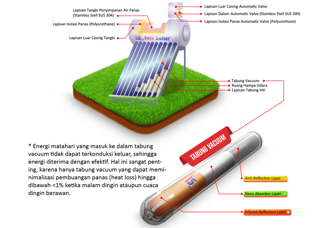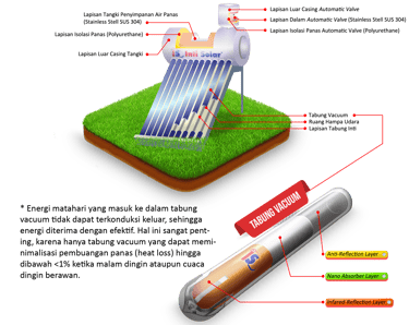Sistem ini adalah pengembangan terkini dari teknologi Tabung Vacuum Tube yang paling banyak digunakan di Eropa, Amerika, dan Australia, karena ketahanannya terhadap musim dingin dan desain modern yang menyatu dengan bangunan.